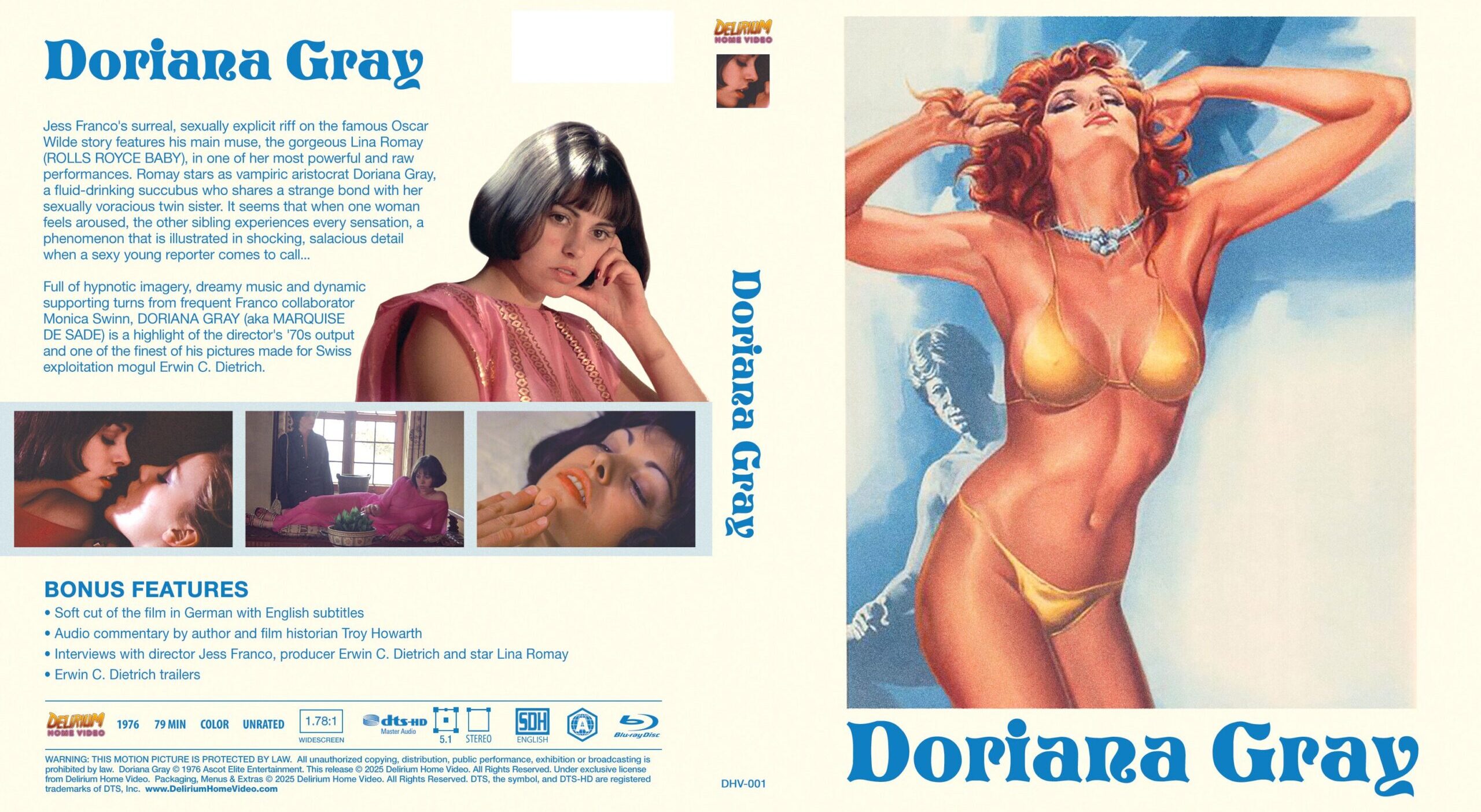 DELIRIUM Home Video is pleased to present DORIANA GRAY on Blu-ray uncut for the first time in North America in this feature-packed special edition. Available as a standard release or with a gorgeous limited edition hardback sleeve featuring art by Spanish painter Suspiria Vilchez.